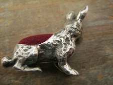 Edwardian Style English Hallmarked Sterling Silver Hare Rabbit Pin Cushion – Red