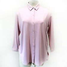 Eileen Fisher Plus Size Pink Jersey Collared Button Up Tunic Top Blouse 3X
