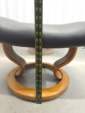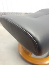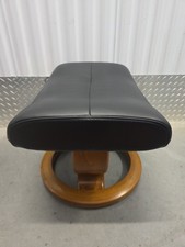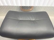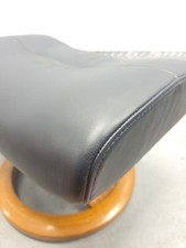 Ekornes Stressless Black Colored Leather Ottoman | Tilt Function | Teak Base
