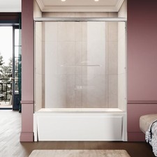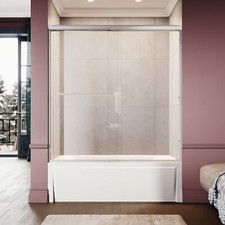 ELEGANT 60″W x 62″H Double Sliding Shower Tub Door 1/4” Clear Glass in Brushed