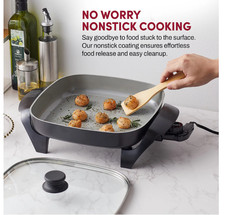 Elite Gourmet 12″ x 12″ Electric Skillet with Glass Lid – Dark Grey NEW!