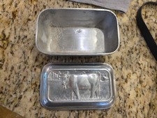 Embossed Cow Covered Butter Dish PEWTER 6″ Farmhouse Rustic Ranch