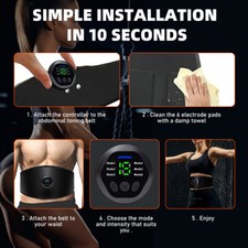 EMS Abdominal Muscle Toning Belt Trainer Rechargeable ABS Stimulator Toner Belt