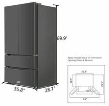 Energy Star Thor Kitchen 36”French Door Refrigerator Fridge 22.5 Cu Ft Black SS
