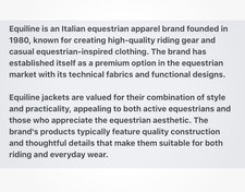 Be the first to review “EQUILINE Equestrian Riding Coat Front Zip & Back Zip Detach Hood Sz XS black/tan”