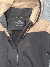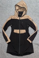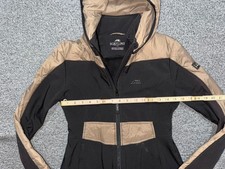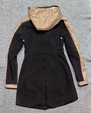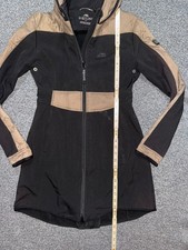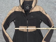 EQUILINE Equestrian Riding Coat Front Zip & Back Zip Detach Hood Sz XS black/tan