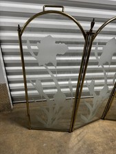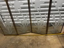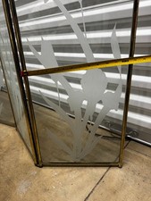 Etched Glass and Brass Fireplace Screen Post-Modern 80’s Vintage Flowers Lily’s