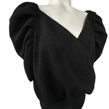 Express Textured Puff Sleeve Surplice Bodysuit L Whimsy Goth Victorian Coquette