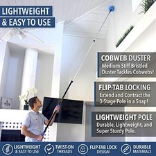 Extension Pole Combo 20 Ft Reach Lightweight Aluminum Cobweb Duster Brush New
