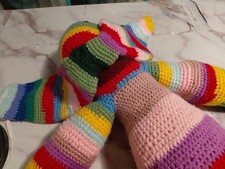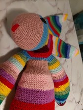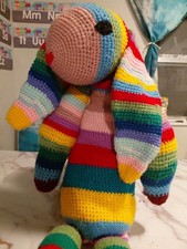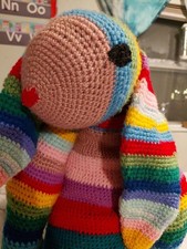 Extra Large Hand Made Crochet Long Ears Rainbow Bunny Stuffed Animal Collectible