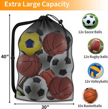 Extra Large Sports Ball Bag, Heavy Duty Breathable Mesh Storage Bag, 40″ X 30″ H