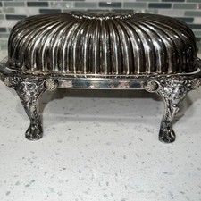 FB Rogers 357 Silver Co Hinged Butter Dish Lion Head Feet Silver Plate
