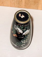 Fine Vintage Japanese Cloisonne Enamel Vase w Egrets and Flowers in Original Box