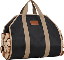 Firewood Carrier Waxed Canvas with Leather Handles, Wood Carrier for Firewood