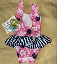 Flap Happy Kids UV 50 NWT Pink Floral Turtles Ruffle One Piece Swimsuit Size 3M