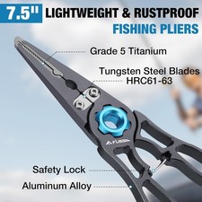 FLISSA 7.5″ Fishing Pliers Titanium Jaw Tungsten Carbide Line Cutter Safety Lock