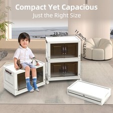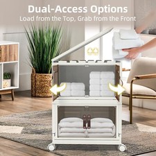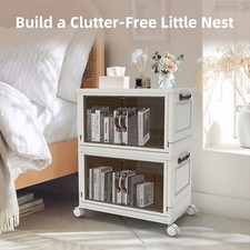 Foldable Storage Bins with Wheels, Stackable Storage Bins with Doors and Lids