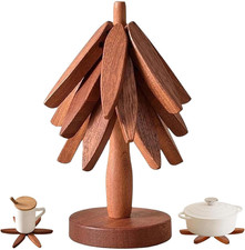 Foldable Wooden Trivet Set Tree Design Hot Pot Holder Table Protector
