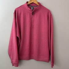 FootJoy FJ Mens XXL Pink Ribbed Drop Needle 1/4 Zip Golf Pullover Sweater