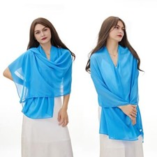 for Women Lightweight Breathable Solid Color Soft Chiffon Long Baby Blue