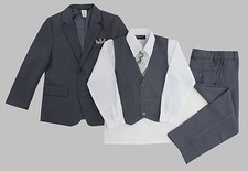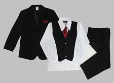 Formal Kids Toddler Boys Pinstripe Suit 5 PC Set With Vest and Tie Size 2T-14