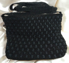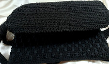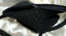 Frankie & Johnnie CROSSBODY Black BAG Crochet Knit 1990s Lined Zipper VTG