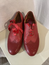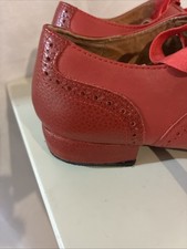 Fulana Red Leather Low Heel Leather Tango Dancing Shoes Oxford Curvy Size 7