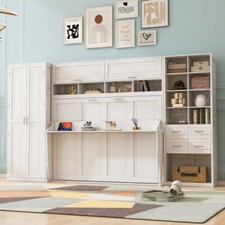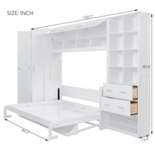 Full Queen Size Murphy Wall Bed with Closet Storage Shelves Drawers Cabinet Bed