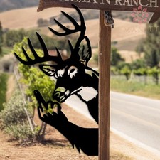 Funny Deer Metal Sign, Middle Finger Deer Art, Outdoor Rude Humor Decor