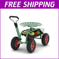 Garden Seat Chair with Wheels Rolling Gardening Stool w/ 360° Swivel Seat Basket