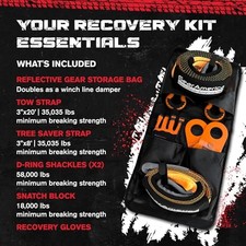 GearAmerica Off Road Recovery Kit, 9 Ton, Includes Tow Strap, Tree 9 Ton Orange