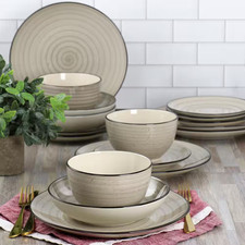 Gia 24 Piece Stoneware Dinnerware Set in Cream