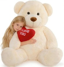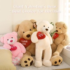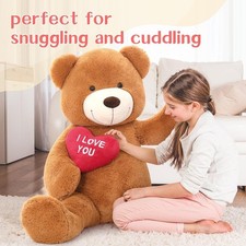 Giant Valentines Day Teddy Bear 52″, Big Stuffed Animal with Heart, Large Brown