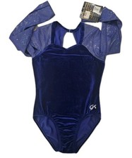 GK Elite VTG Sweetheart Blue Velvet Holographic Open Back Competition Leotard AL