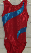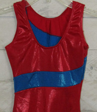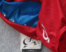 GK Leotard Foil Metallic Red Blue Sparkle Gems Gymnastics AXS Adult XS
