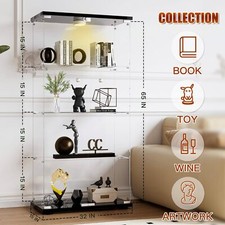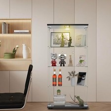 Glass Display Cabinet 4 Shelves 2 Doors Push Light Storage For Curio Bookshelf