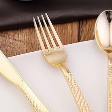 Gold Hammered Design Forks Party Wedding Disposable Tableware Banquet Supplies
