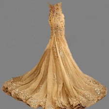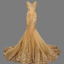 Gold Mermaid Evening Dresses Beaded Prom Pageant Formal Party Gowns Sequins
