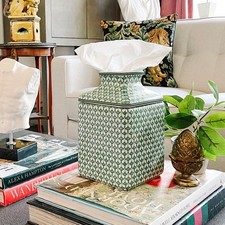 Green & White Fishnet Ceramic Tissue Box Cover