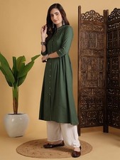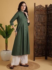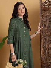 Be the first to review “Green Kurta Women Indian Kurti Mandarin Collar Calf Length Dress Tunic”