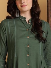 Green Kurta Women Indian Kurti Mandarin Collar Calf Length Dress Tunic