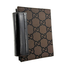 GUCCI Cover GG Nylon Brown Black Agenda Purse Authentic From Japan