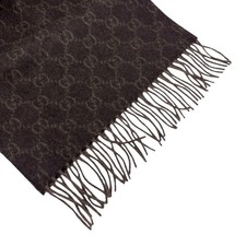 GUCCI Vintage GG Monogram Lapin Fur Scarf Wrap Shawl Cashmere Brown Fringe