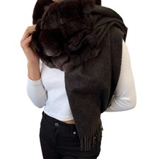 Be the first to review “GUCCI Vintage GG Monogram Lapin Fur Scarf Wrap Shawl Cashmere Brown Fringe”