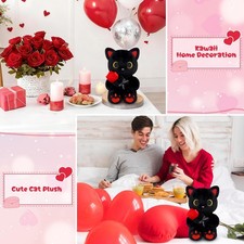 Hagusahuo Black Cat Plush Holding Rose, 8 Inch Kawaii Valentines Red Rose