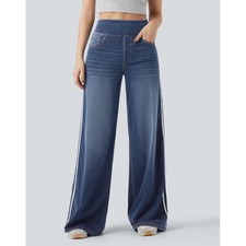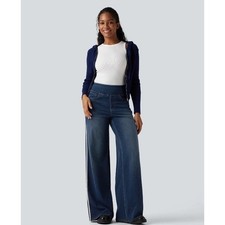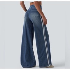Halara High-Waisted Wide Leg Jeans – Medium Wash Blue – Size L (Regular)