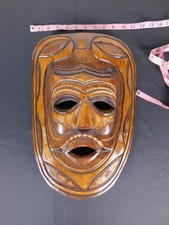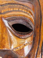 Hand Carved Wooden Tribal Wall Mask 16″ Rustic Boho Witchcore Decor