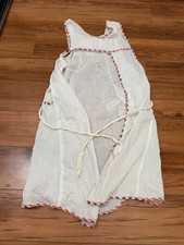 Handmade White Cotton Girls Smock Dress Bow Trim Sleeveless Vintage Style