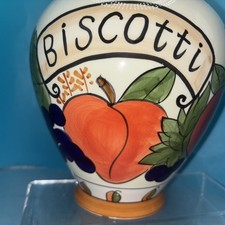 Handpainted Ceramic Biscotti Jar Fruit Design