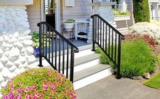 Handrails for Outdoor Steps Matte Black Wrought Iron Stair Railing for 3-4 Step